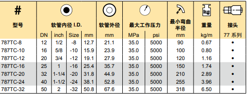 與普通的纏繞管相比,派克的Compact SpiralTM 緊湊型纏繞管787TC在 布管、安裝、產品尺寸、重量和降低庫存等很多方面都顯現出巨大的優 勢。該產品是自25年前派克No-SkiveTM不剝膠技術問世以來,液壓軟管 產品最重大的進步。