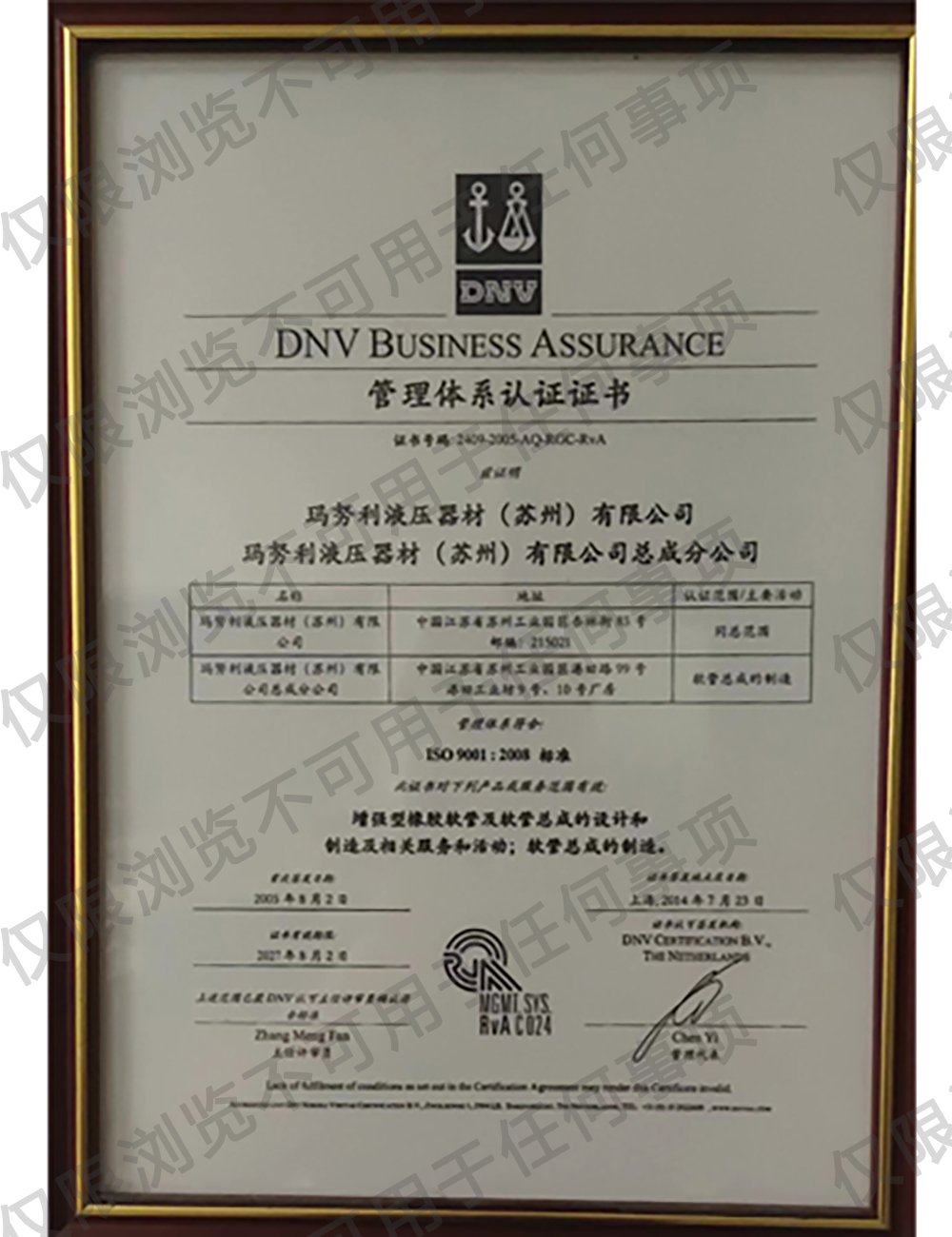 管理體系認證證書