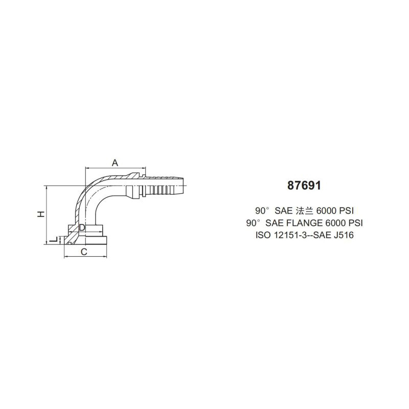 扣壓式接頭87691 90° SAE 法蘭(flange)6000 psi