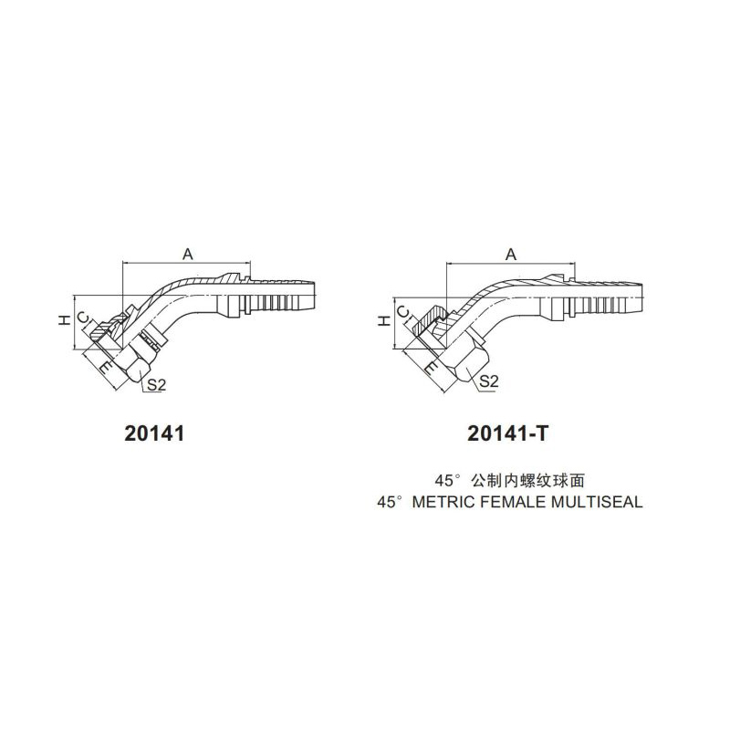 扣壓式接頭 20141和20141-T 45°公制內(nèi)螺紋 球面密封面